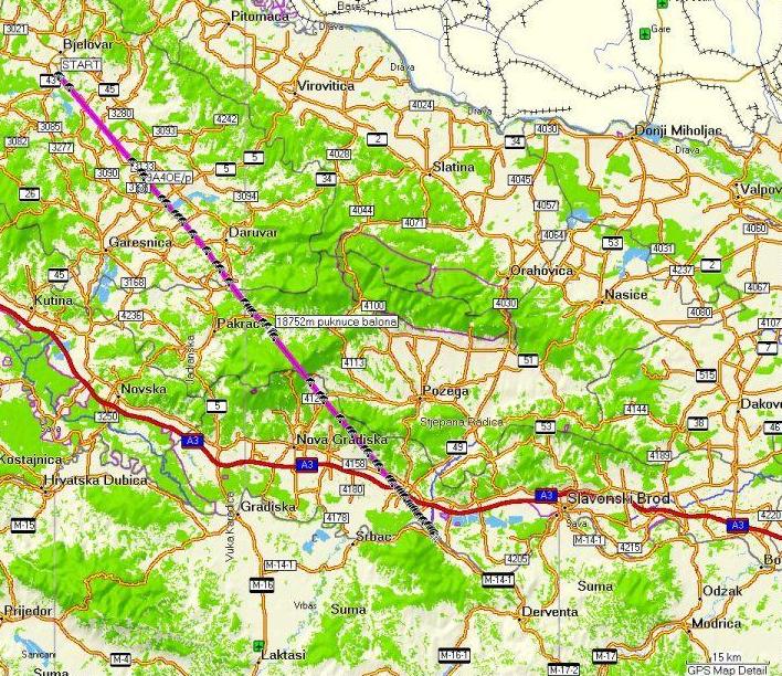 Lokacija puštanja: Zrakoplovno pristanište Brezovac , koordinati 45.51.39 N, 16.50.09 E
