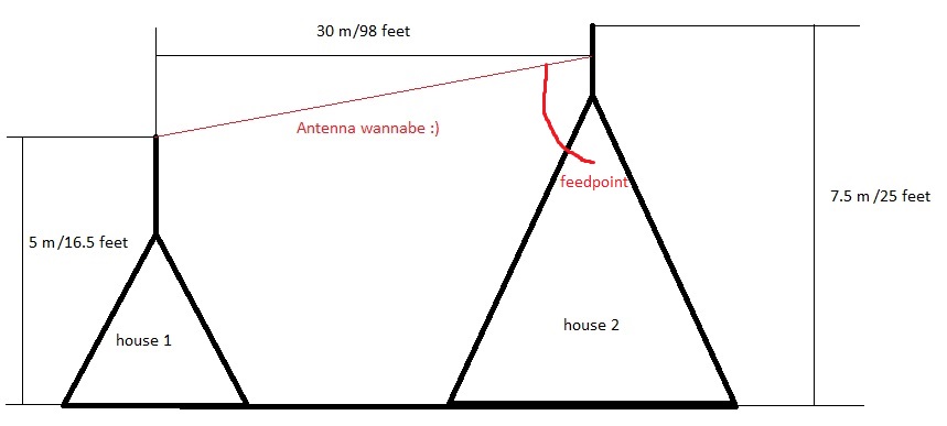 Sem nov na KV področju in me zanima, katera bi bila najbolj primerna antena za mojo konfiguracijo? Ciljam na navaden dipol ali end feed anteno. V prilogi dodajam slikco z merami parcele.
