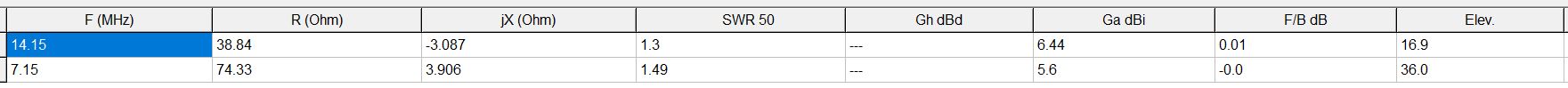 Rad bi si naredil terensko anteno za 40 in 20m. Teleskopski drog je sotabeams 6m. Ne odgovarja mi linked dipol, ker ne mislim spuščati žice za brikanje krokodilčkov. Raje bi naredil Fan Inverted V anteno. Z mmana programom imam izračunane parametre z SWR 1.3 in 1.44. Na 15m je izračun SWR 8,37.