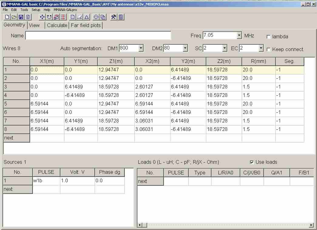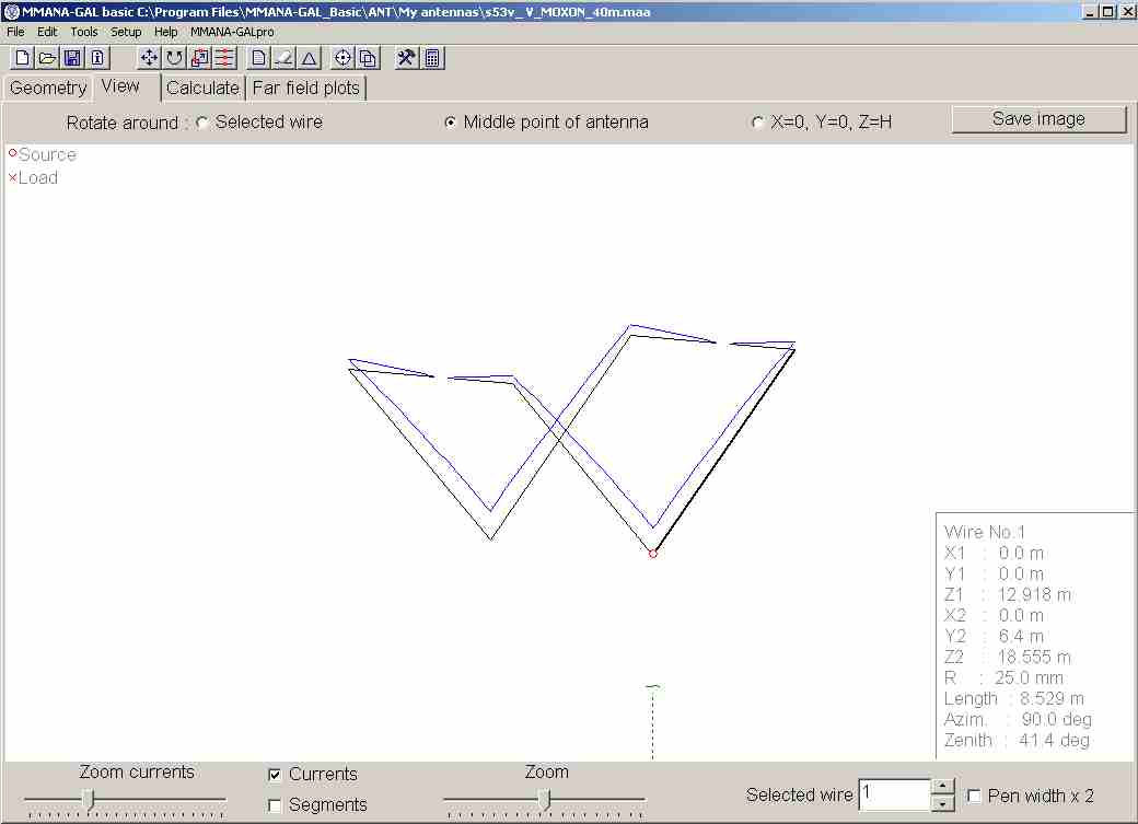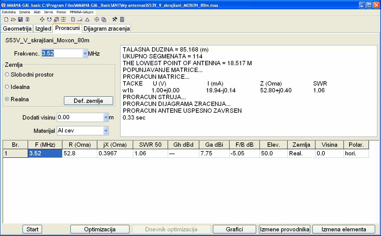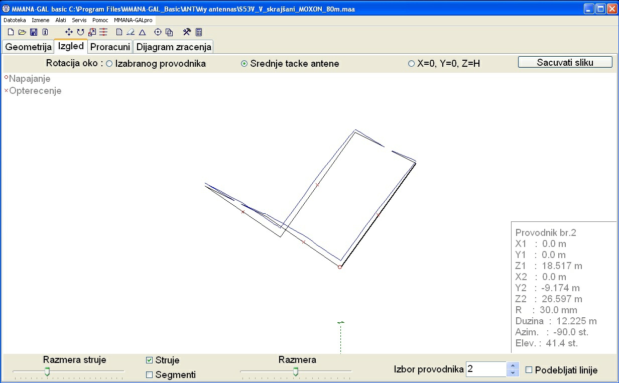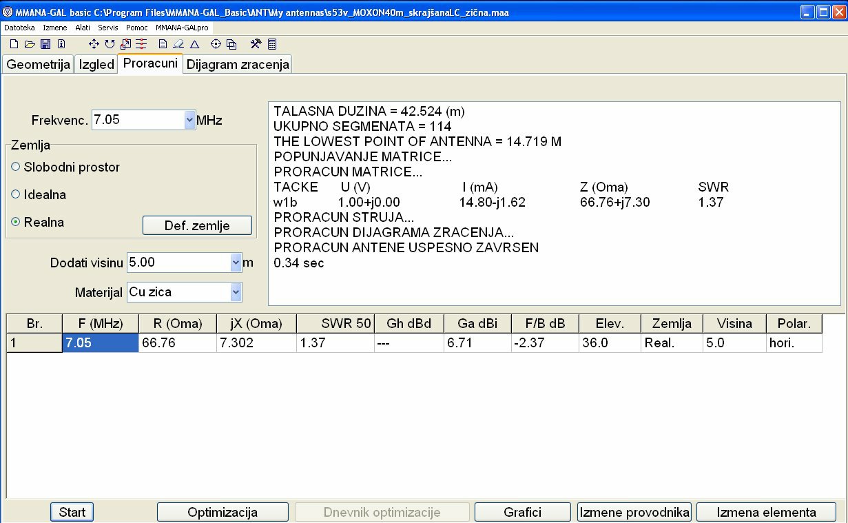 Adi je vse že zmodeliral in naredil v praksi pri Nerinu S51EQ. (Ima jo tudi Milan S52MD). Nikoli si dve anteni nista popolnoma enaki med seboj, saj je veliko odvisno od višine, na katero je antena postavljena. Zato pa so tisti "repki", da se anteno prilagodi na dane pogoje. Če bi jo postavljali na višino dveh valovnih dolžin, bi bilo računanje lažje, saj upliv zemlje ne bi bil tako izrazit. pri navadnih smrtnikih, pa je postavljena nizko nad tlemi na 0,25 do 0,5 valovne dolžine in zemlja še kako upliva. Sam sem imel srečo, da Nerinov stolp omogoča spuščanje in dviganje med 6m in 18m višine, pa je bilo "muziciranje" lažje.