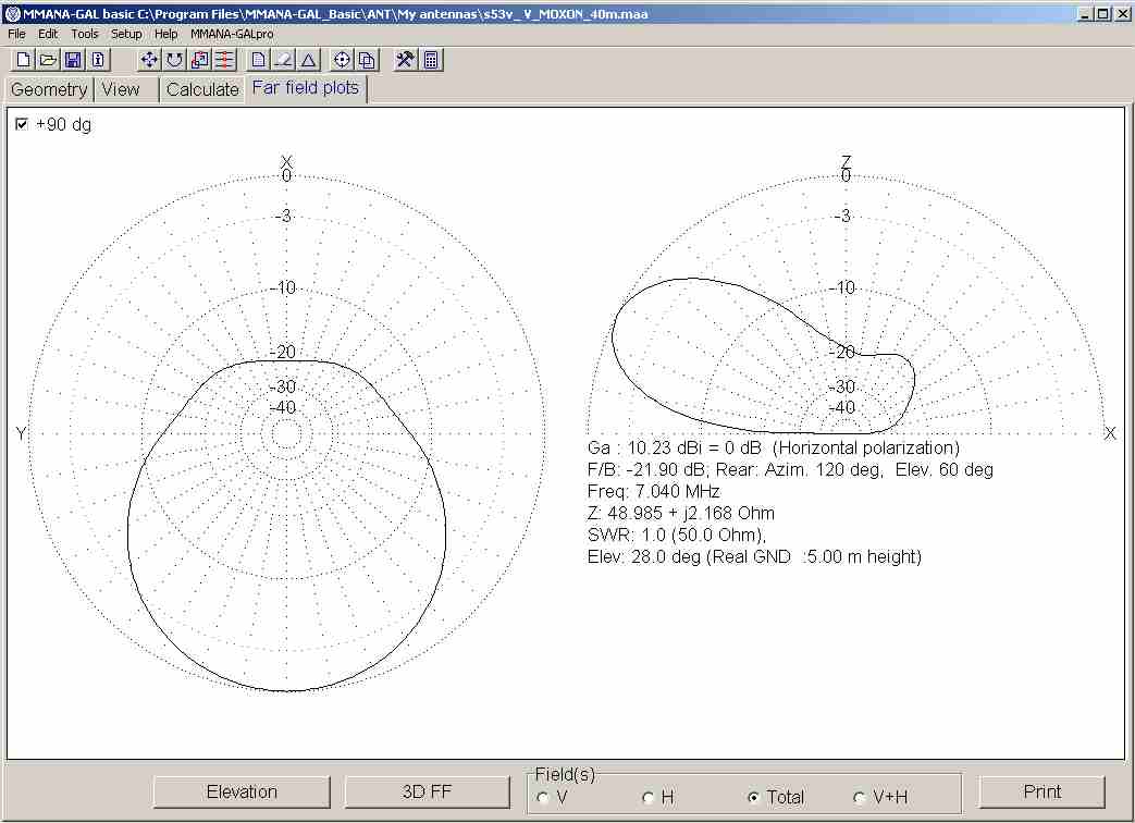 Na kateri višini pa si primerjal obe verziji.? Po mojem modelu mora biti to,kar si poslal nekje na 25 metrih. ??? Slika,ki sem jo dal na forum je modelirana na spodnji višini vpetja 17m. Po mojih modelih se "V" Moxon za 40M tudi v 3D obnaša bolje od horizontalnega Moxona do višine nekje 20-21m. Višje pa se res pojavijo vertikalni snopi in podobno kot z Inverted V greješ oblake. :lol: Dopuščam pa, da delam kakšno napako :o
