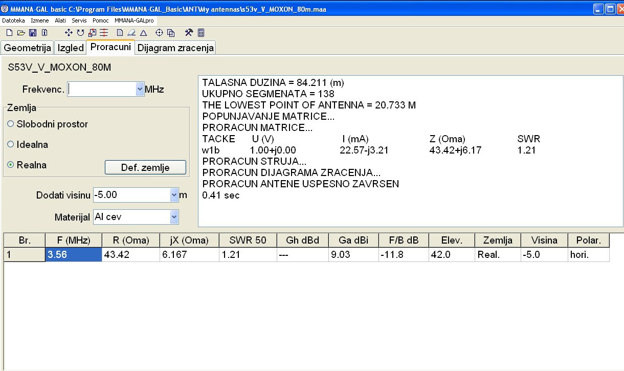 sem zadnjič na hitro "nakracal" in mogoče ni bilo razumljivo.Antena je modelirana na spodnjem koncu v višini 18m in nad
