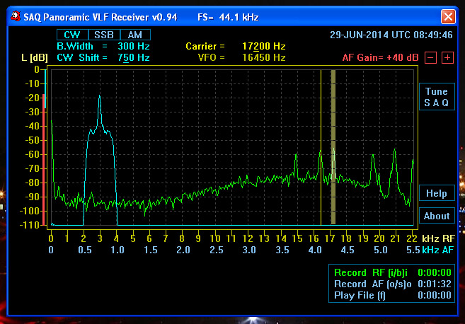 SAQ 17.2kHz - sprejem oddajnika SAQ Grimeton