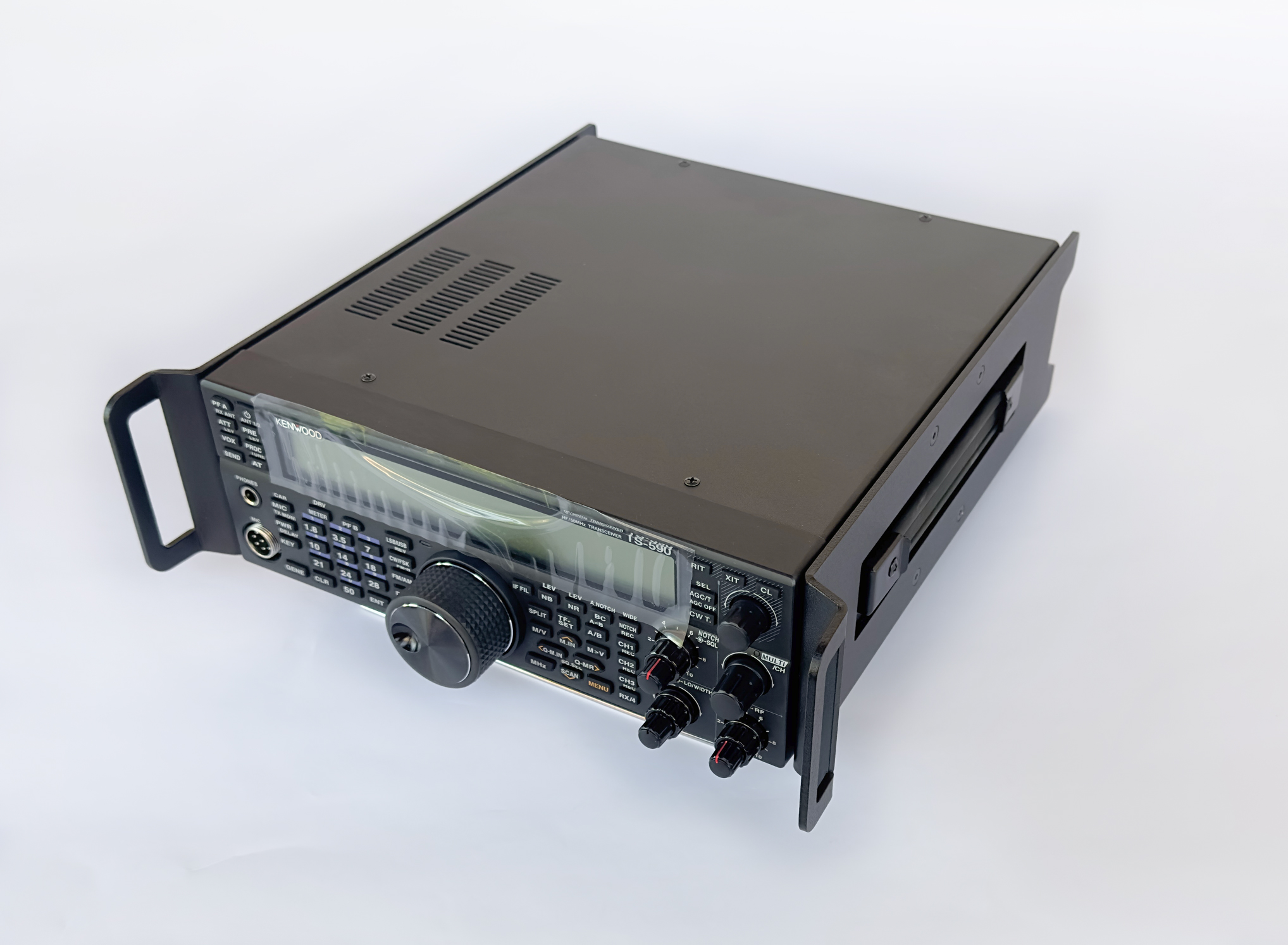 Sam sem naročil in namestil ročaja samo za TS-590SG, pripenjam slikco. Sprednja in zadnja plošča sta pri prestavljanju postaje lepo zaščiteni.