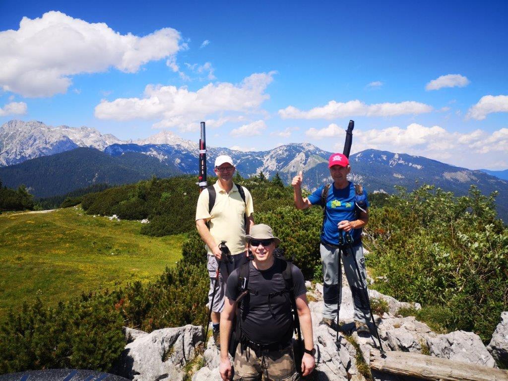 Proti vrhu smo se povzpeli po neoznačenem kolovozu. Precej visoko temperaturo je veter dodobra oblažil. Po uri hoje dosežemo vrh.