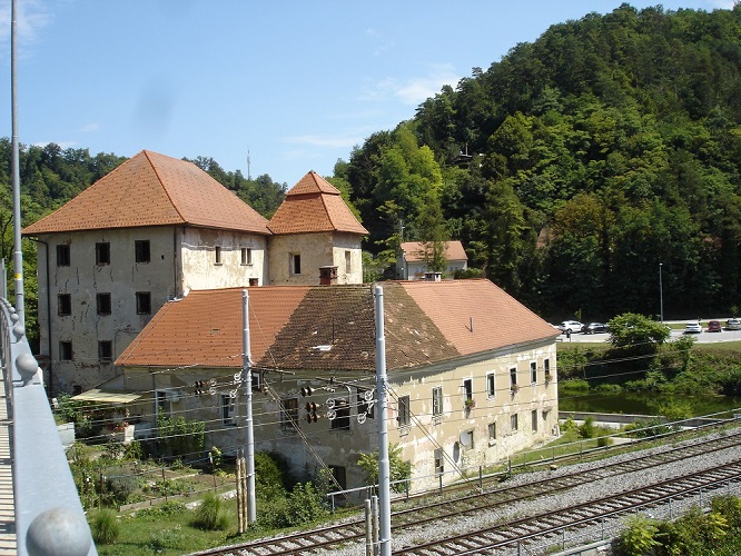 Spodnji grad Turn stoji pod hribom ob sotočju reke Save in Brestanice.