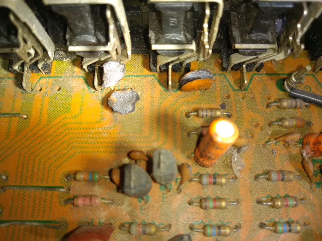 • starejši hi-fi ojačevalec Pioneer (kondenzatorji na vhodih, trase na plošči popolnoma izginile, glavna varovalko raztreščila na koščke)