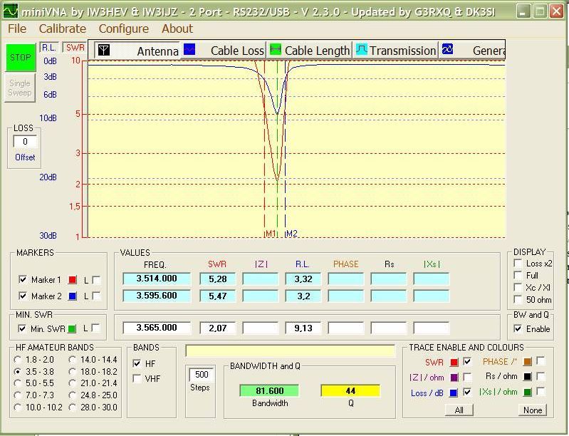 Hvala Bruno S51M za izposoja antenskega analizatorja in prilagam trenutne rezultate antene !
