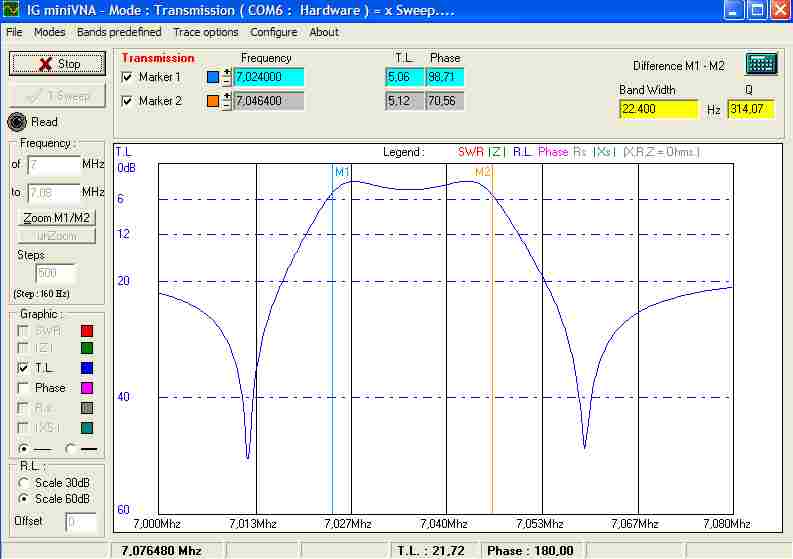 Filtri pokrivajo CW območje nekje od 7,000 do 7,045. Za test sem izbral najcenejšega 7,035M30A ,ki je sicer malo širši stane pa samo 3,80€.Žal