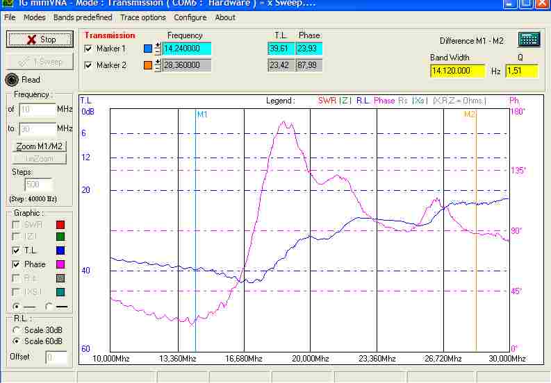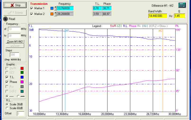 nato pa še v "split" izvedbi,kakor priporoča Seifert W8JI ( 6 ovojev v eno 6 v drugo smer). Rezultat je s takšnim tokovnim balunom je čisto nekaj drugega saj duši "common mode" tok na opletu na 14Mhz skoraj 40 dB na 28 Mhz pa 23,4 db.