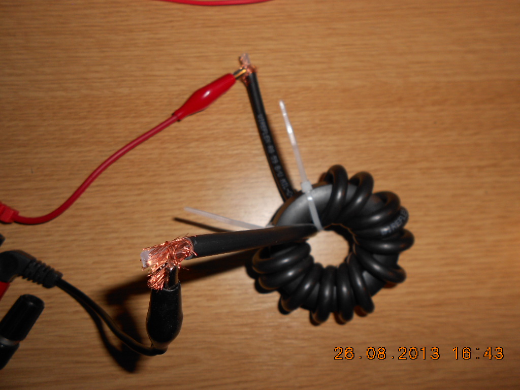 Za hitro primerjavo sem na feritno jedro FT 240-43 navil kakšen meter koaksa RG 58/u in to najprej 12 ovojev ovoj do ovoja