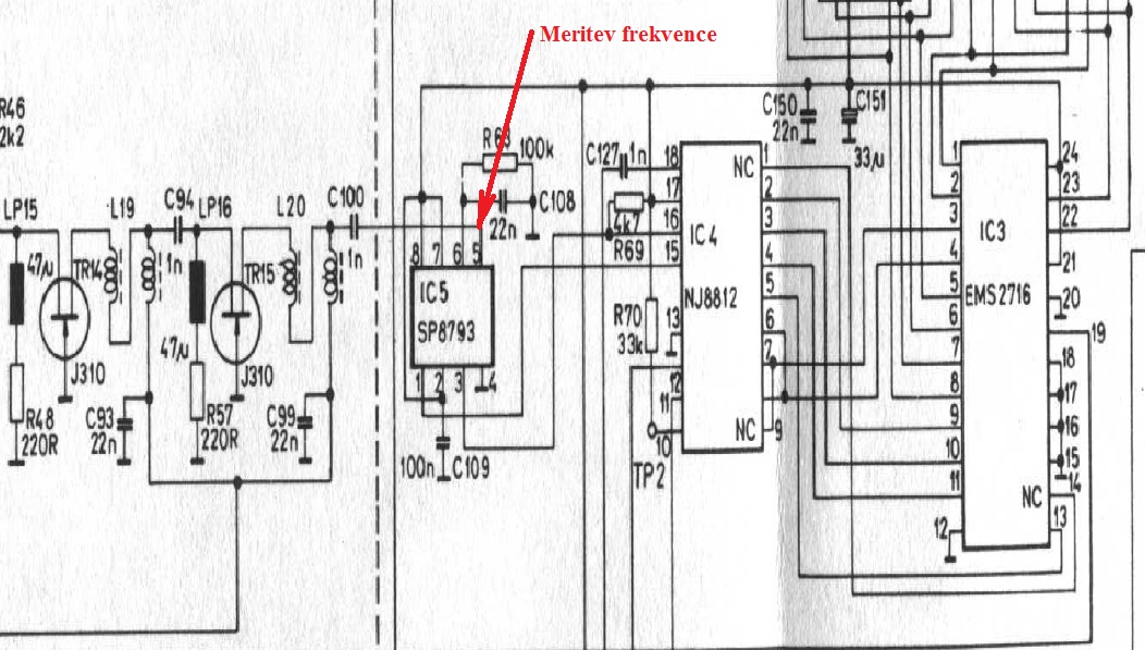 Mi pa še vedno ni najbolj jasen postopek pri umerjanju radijske postaje. Poizkusil sem meriti frekvenco na pinu 5 SP8793, vendar z osciloskopom ali frekvenc metrom ne zaznam nobenega signala. Meril sem tudi napetost na varikap diodi, vendar se napetost spreminja od 0V do cca 4V, in to povsem naključno. Kako naj nastavim to napetost na varikap diodi?