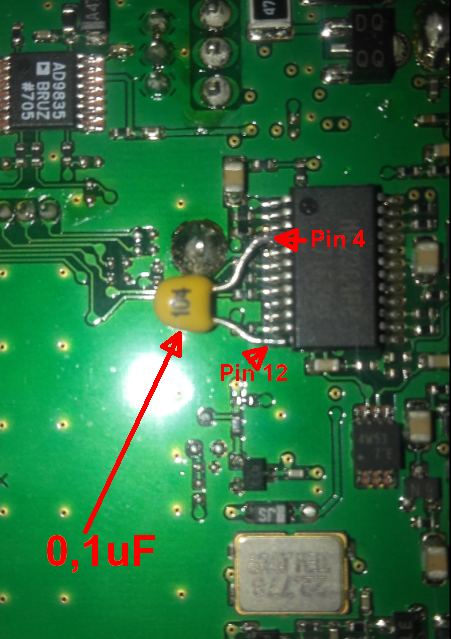 Posega naj se ne lotevajo tisti,ki nimajo izkušenj z lotanjem SMD-jev !!!!. Za ta poseg neizkušenim priporočam, da se obrnejo na Jožeta S53PJ. Izhod iz računalnika jemljem iz izhoda za slušalke in je preko 600 ohmskega transformatorja 1:1 povezan na Data konektor pin1 ter GND. Izhodni nivo se nastavi na računalniku na izhodu slušalk.