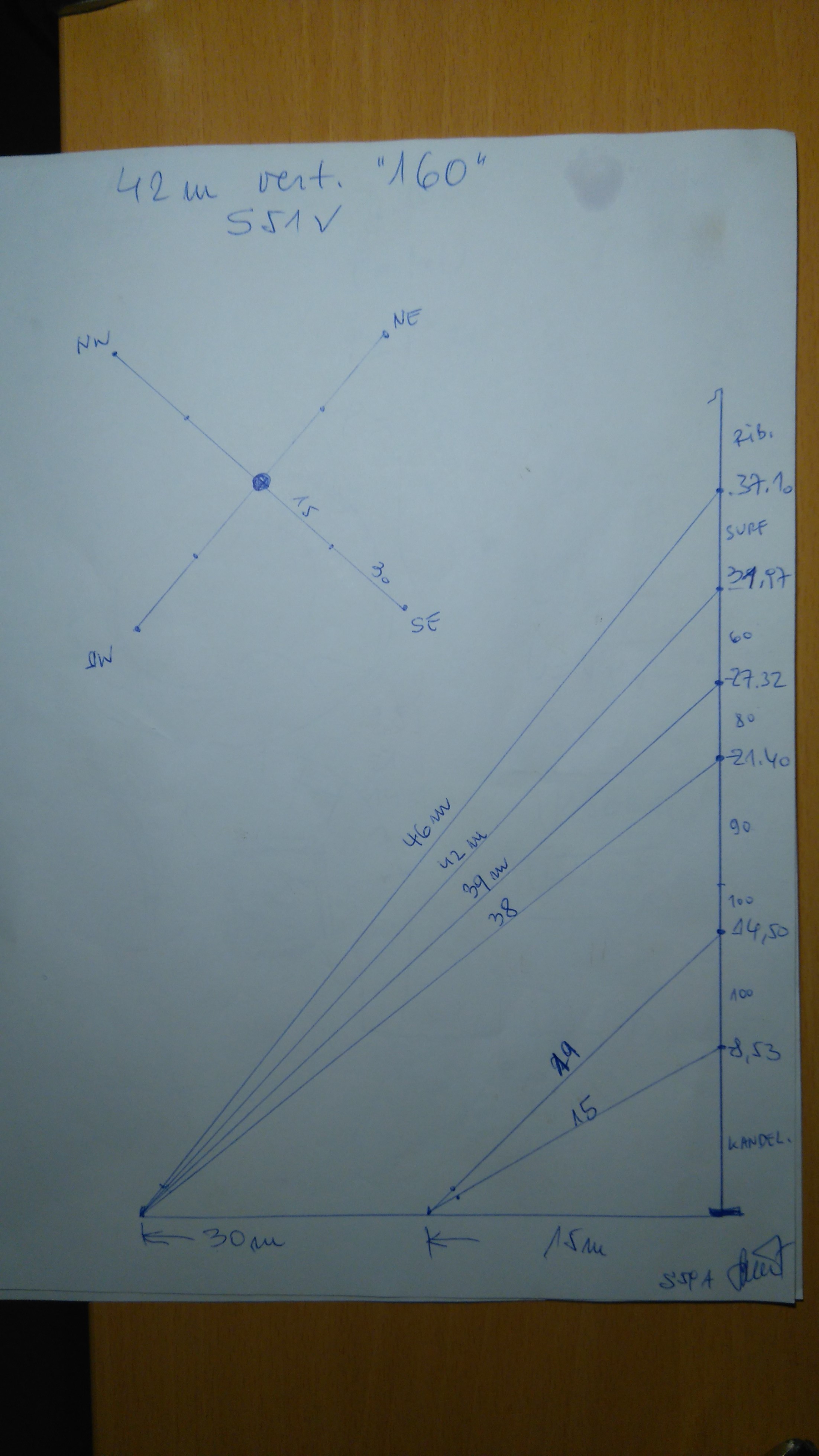 Spodaj je alu kandelaber , nato 9m cevi fi100mm in dalje stara vertikalka. Sidranje je izvedeno s pvc vrvjo za vinograd.