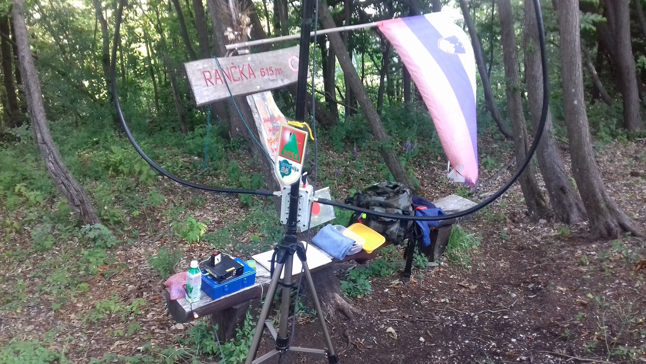 Tehnika: TRX SW 2017-15 W; baterija Liion 5100 mAh. Antena ML izdelana včeraj iz koaxa Ecoflex 15 -premer 1,1 m - obseg 4 m.