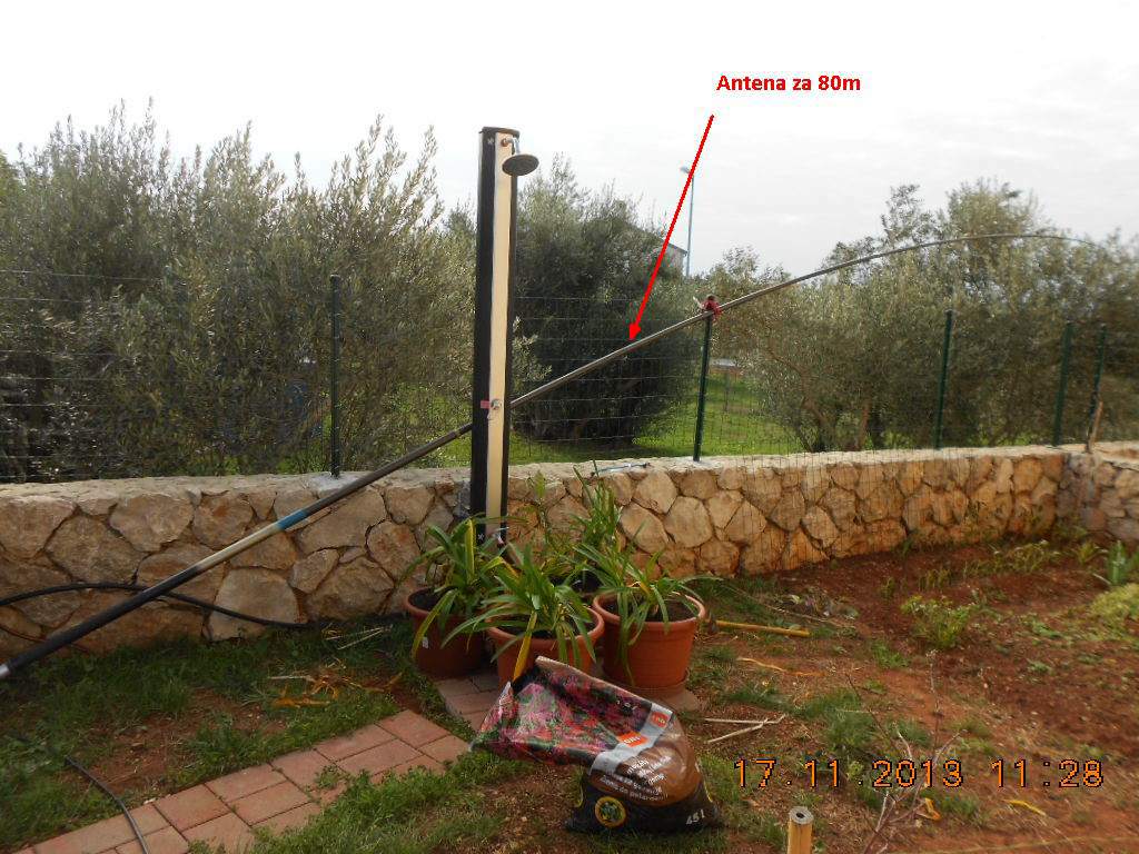 Tole je bila tale "žica". Vertikalka za 40m iz ribiških palic ,ki je nisem mogel postaviti zaradi močne burje pa sem jo podaljšal z "dratom" na 80m in položil kar na ograjo :D