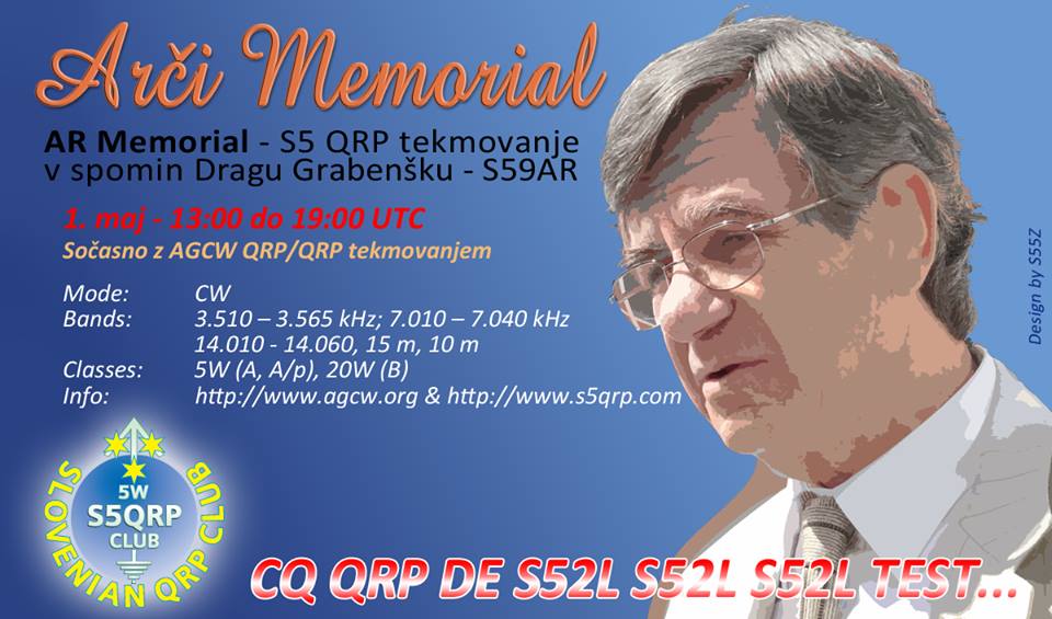 S5QRP Club organizira tradicionalno CW QRP spominsko tekmovanje "AR Memorial". Posvečeno je pokojnemu dolgoletnemu sekretarju zveze radioamaterjev Slovenije (ZRS) - Dragu S59AR - Arčiju in vsem drugim pokojnim kolegom radioamaterjem. Drago je bil častni član in soustanovitelj S5 QRP kluba, neutrudni konstruktor in organizator, ljubitelj QRP radia in CW dela.