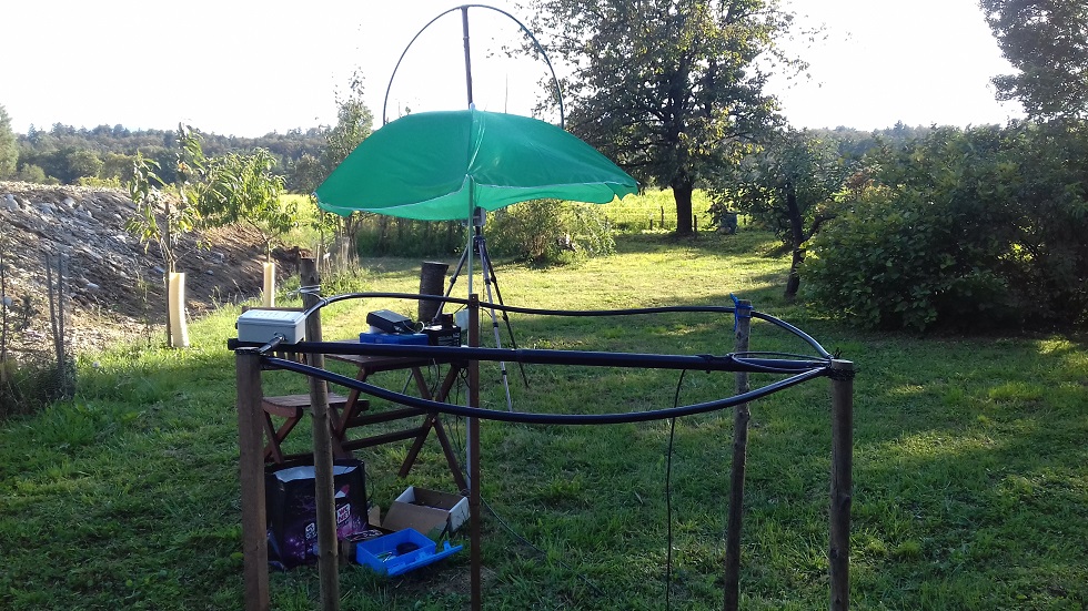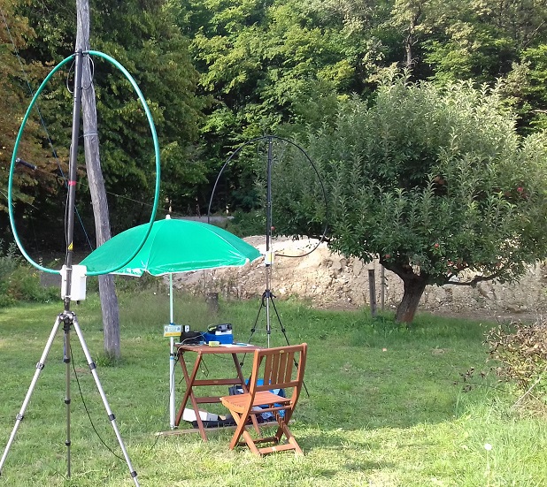 Antena: 2 x home made Magnetic loop (ML) dolžina 4m - premer 1,1 m.