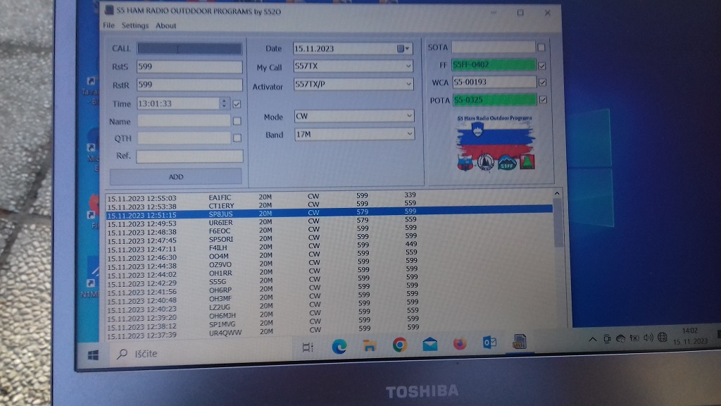 Aktivacija S5FF-0402 + WCA S5-00193 + POTA S5-0325